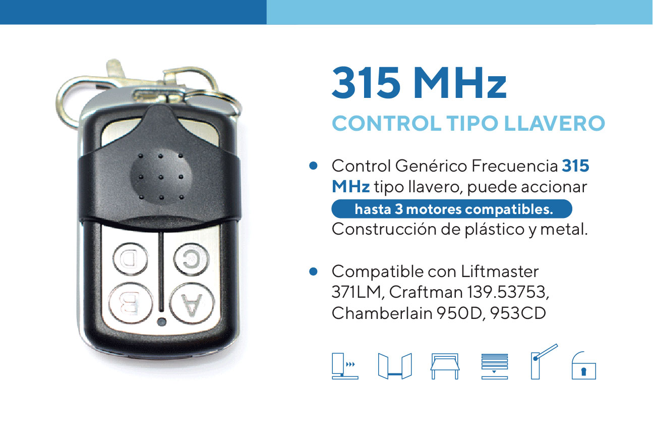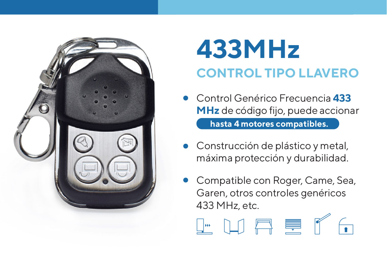 Control remoto confiable y de alta calidad, diseñado para operar puertas de garaje automáticas. Ofrece un excelente alcance y compatibilidad con sistemas originales, garantizando seguridad y facilidad de uso.